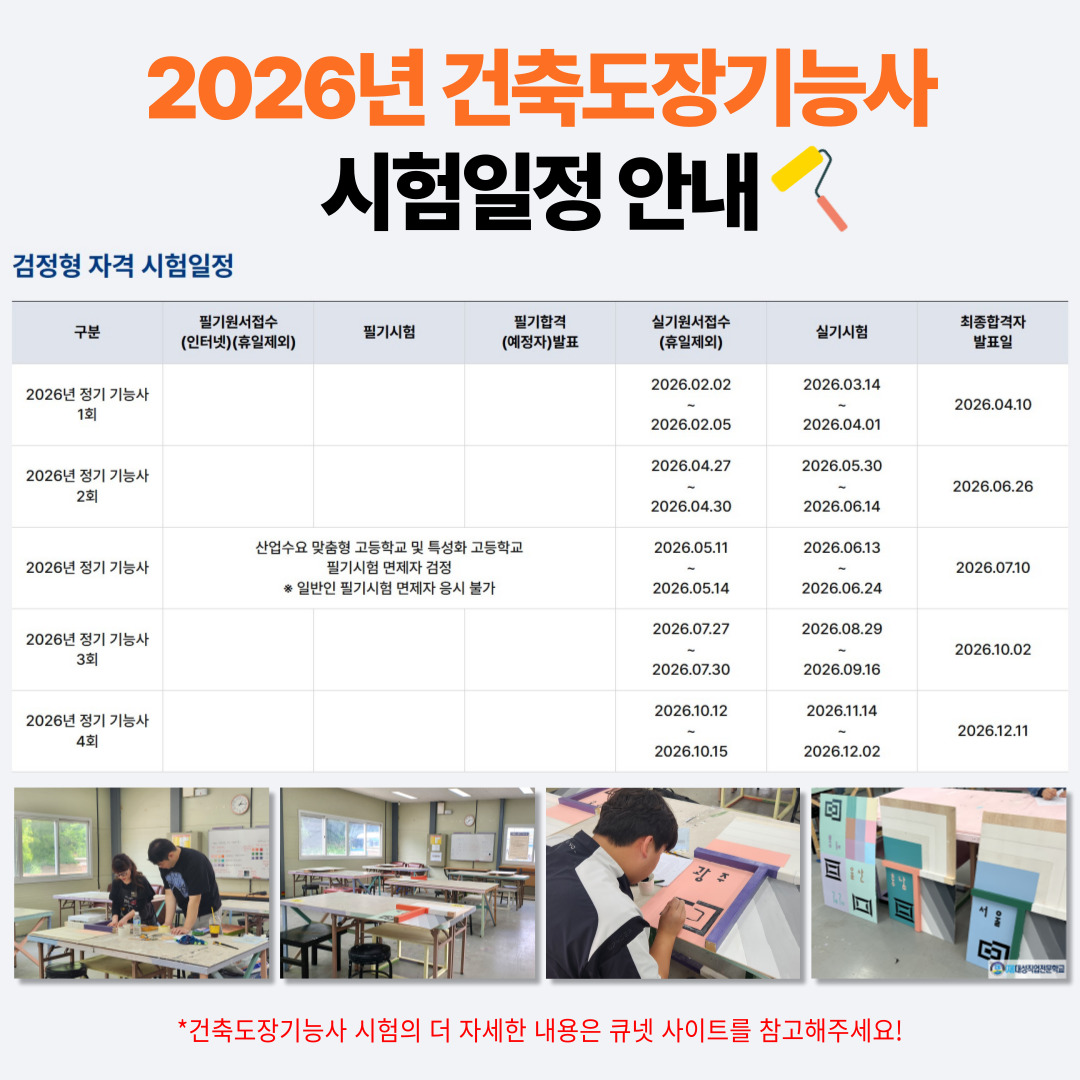오늘은 2026 건축도장기능사의 시험정보, 시험 시 주의사항, 자격증 취득 후 취업전망,